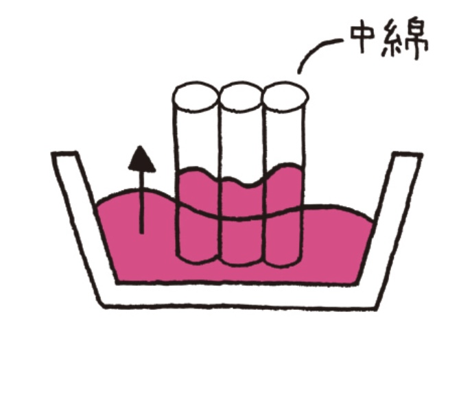 中綿(わた)をインクに直接ひたして、インクを吸い上げる。