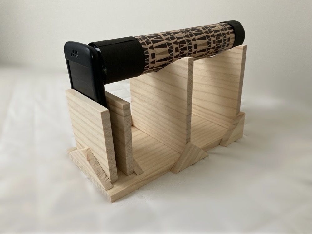 6,スマホ台(9センチの正方形)2枚作り、スマホが入る大きさ(1,2センチ)開けて仕切りを作る